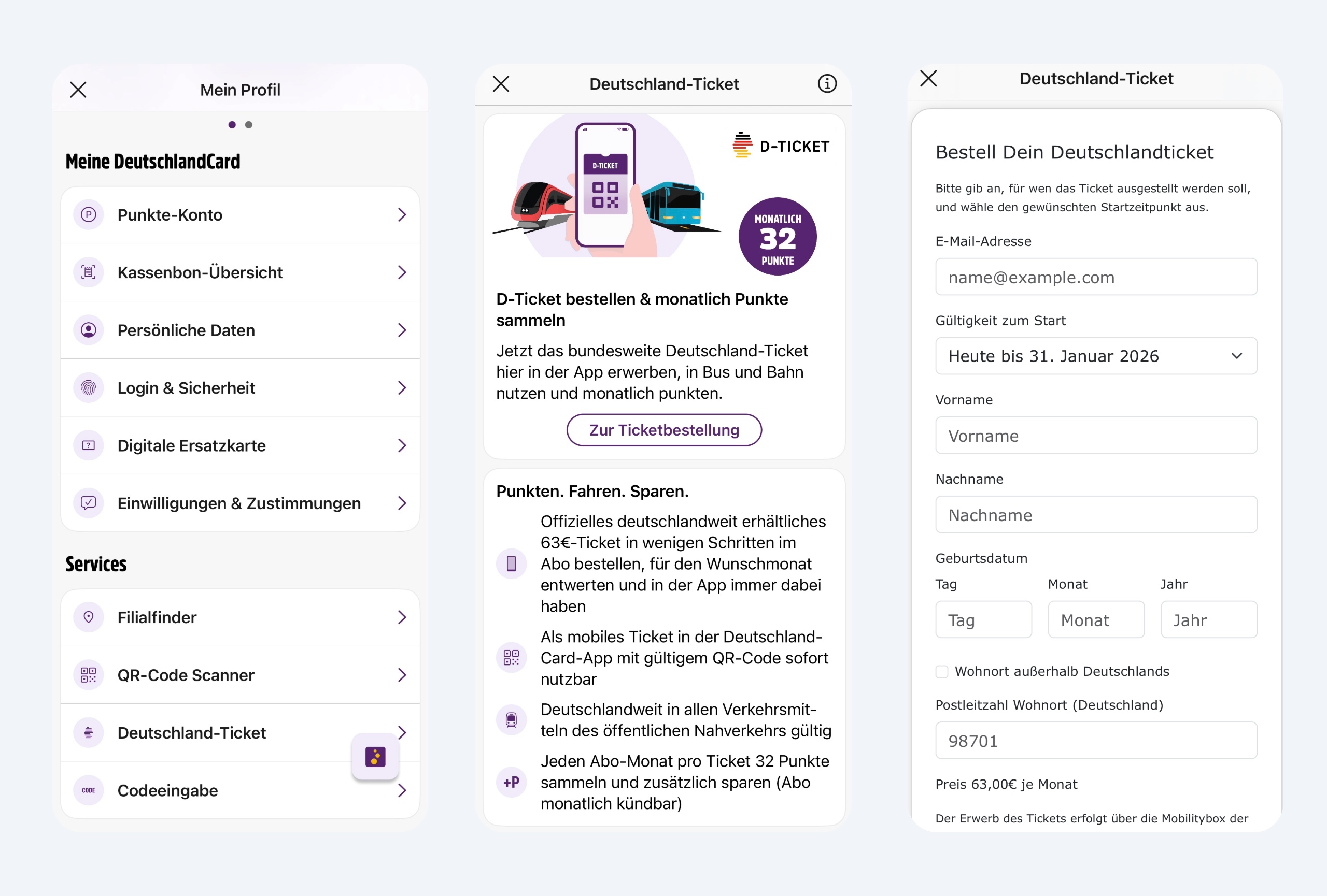 Deutschlandticket über die DeutschlandCard App
